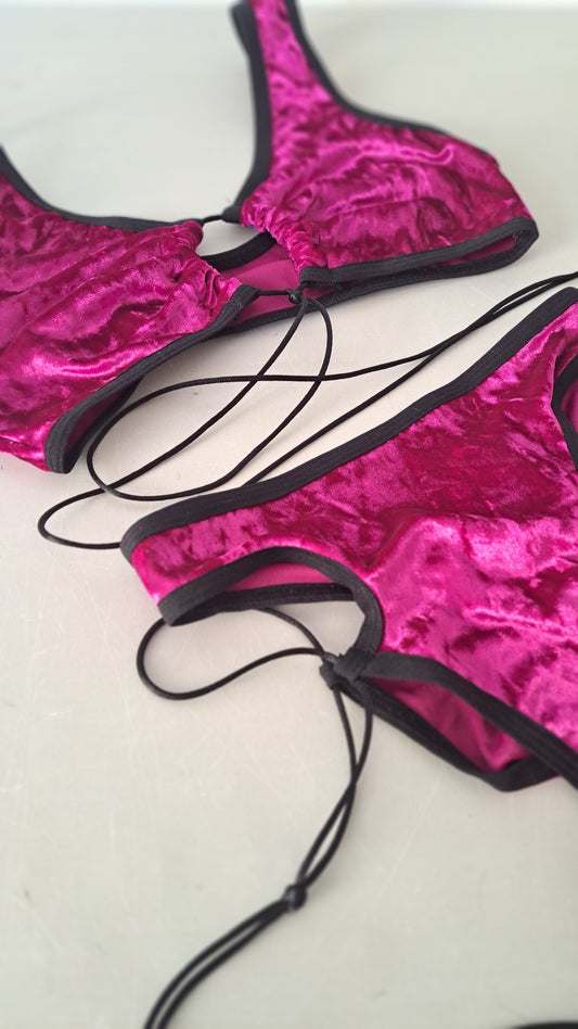 Completo elettra crush velvet magenta nero