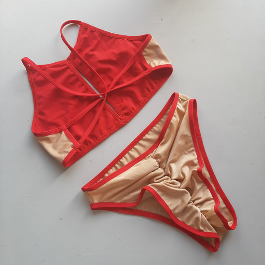 Completo cross high cut lycra carne/rosso