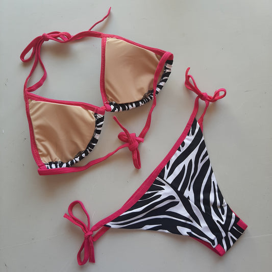 Completo bikini arricciato laccetti zebra/fucsia