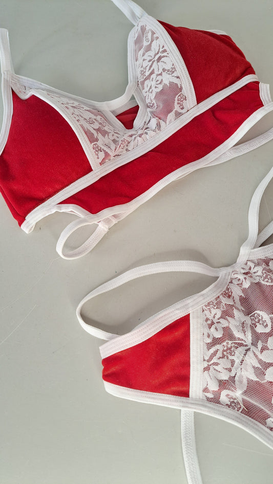 Completo bikini slip coco laccetti zebra rosso