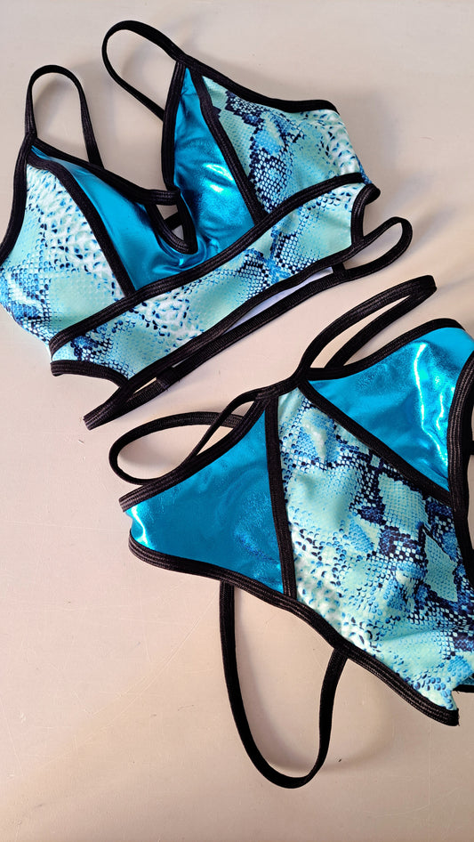 Completo eloisa high cut harness patch anaconda azzurro/nero